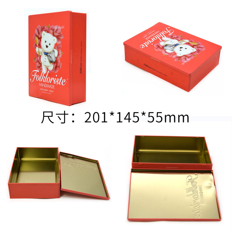 這款品牌奶酪餅干食品鐵盒采用國產(chǎn)馬口鐵制作;結(jié)構(gòu)是三片式天地蓋,蓋內(nèi)卷。蓋子表面品牌文字名稱進(jìn)行3D雕刻。其尺寸是:201*145*55mm.同時,選擇單面進(jìn)行專色印刷,其外部過光油,內(nèi)部可選擇過透明油,奶酪餅干鐵盒塔配不同材質(zhì)的內(nèi)托,讓產(chǎn)品的整體效果更好。產(chǎn)品的內(nèi)托材質(zhì)可以自由選擇,內(nèi)托的材質(zhì)有:PVC,EVA,海綿等等,材質(zhì)不同價格也不同,在確定形狀、尺寸之前需要打樣進(jìn)行試裝。你也可以在我司定制鐵盒的手提袋。