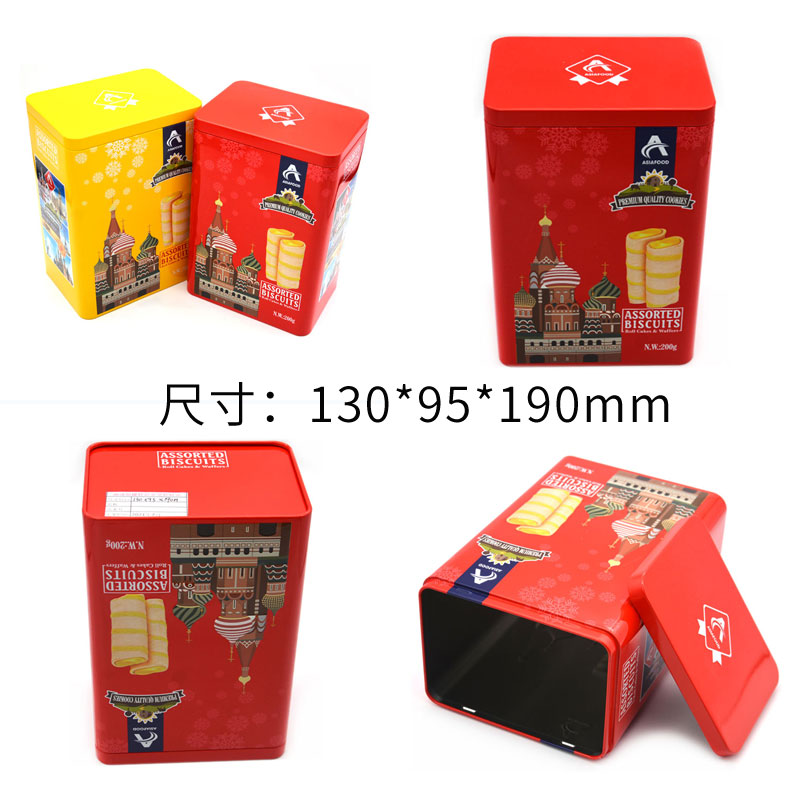 這款品牌200克蛋卷鐵盒采用國產(chǎn)馬口鐵制作;結(jié)構(gòu)是三片式天地蓋,蓋內(nèi)卷。蓋子表面品牌文字名稱進(jìn)行3D雕刻。其尺寸是:130*95*190mm.同時,選擇單面進(jìn)行專色印刷,其外部過光油,內(nèi)部可選擇過透明油,蛋卷鐵盒塔配不同材質(zhì)的內(nèi)托,讓產(chǎn)品的整體效果更好。產(chǎn)品的內(nèi)托材質(zhì)可以自由選擇,內(nèi)托的材質(zhì)有:PVC,EVA,海綿等等,材質(zhì)不同價格也不同,在確定形狀、尺寸之前需要打樣進(jìn)行試裝。