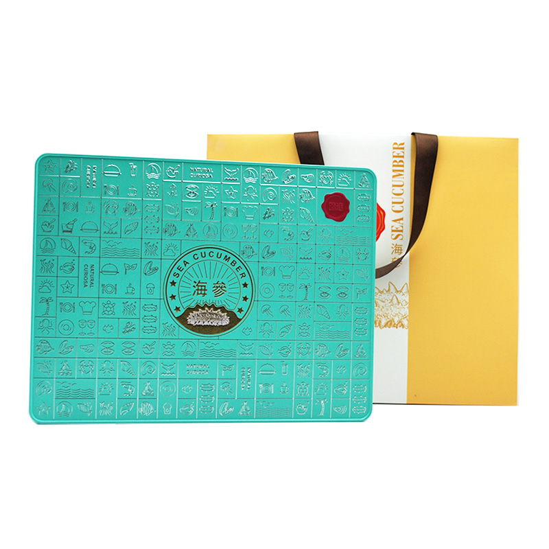 這款公版淡干海參禮品包裝鐵盒采用國(guó)產(chǎn)馬口鐵制作;是三片式天地蓋,蓋內(nèi)卷結(jié)構(gòu);蓋子進(jìn)行了滿版雕刻,其尺寸是:300x230x75mm,材質(zhì)厚度是0.25mm.選擇單面進(jìn)行專色印刷,其外部過啞油油,內(nèi)部可選擇過金油,海參禮品盒塔配白色高密度珍珠棉+貼灰色絨布內(nèi)托和白卡紙印專金滿版壓紋手提袋,讓產(chǎn)品的整體效果更好。海參禮品鐵盒的內(nèi)托材質(zhì)可以自由選擇,內(nèi)托的材質(zhì)有:PVC,EVA,海綿等等,材質(zhì)不同價(jià)格也不同,你訂購達(dá)到3000個(gè),可以定制印刷圖案和雕刻工藝。禮品鐵盒現(xiàn)貨發(fā)售,廠家直銷,價(jià)格實(shí)惠,100個(gè)起發(fā),想了解更多請(qǐng)聯(lián)系我們。